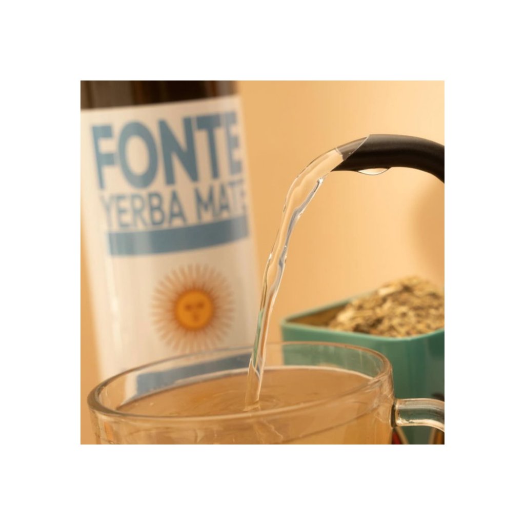 - Do hrnku nebo sklenice přidejte 5–10 ml Fonte Speciality Concentrate Yerba Mate.